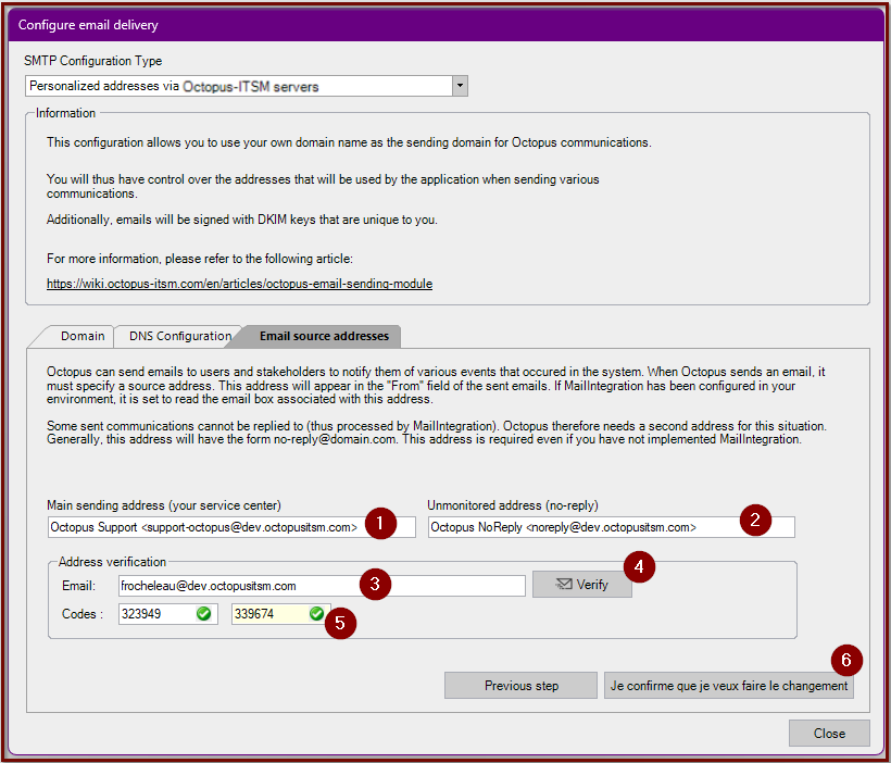 - If this address belongs to the @octopus-itsm.com domain, you can change this address without fear of service interruption