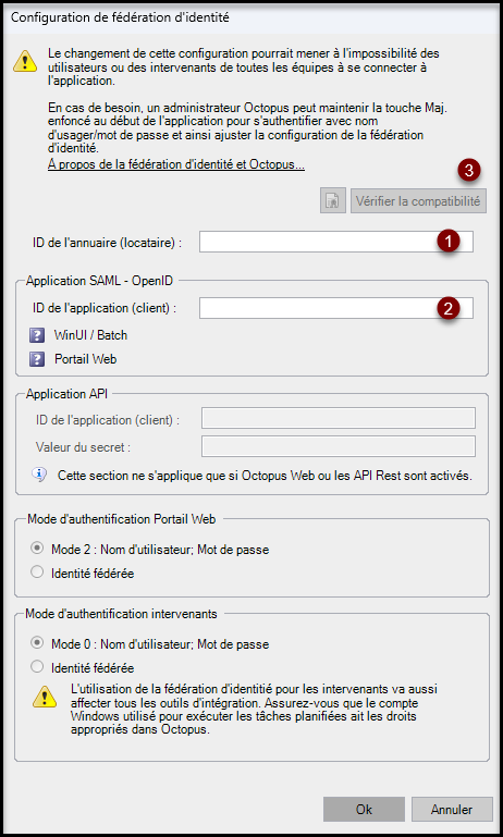 Octopus peut se connecter à un fédérateur d’authentification pour faciliter l'accès à l'application en mode hébergé.